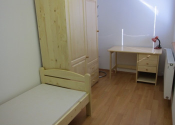 Izba je zariadená s nábytkom. Posteľ, 2 x skriňa, písací stôl, stolička, zrkadlo.